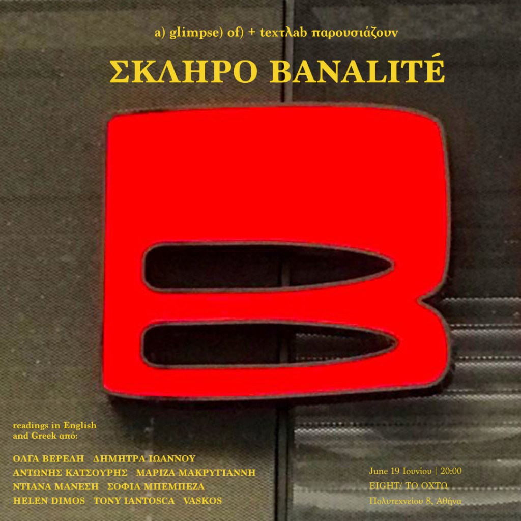 VASKOS (Vassilis Noulas & Kostas Tzimoulis)participate at the poetry reading evening “SKLIRO BANALITE” organized by A) GLIMPSE) OF) and texτλab at EIGHT critical institute for arts and politics, Athens.