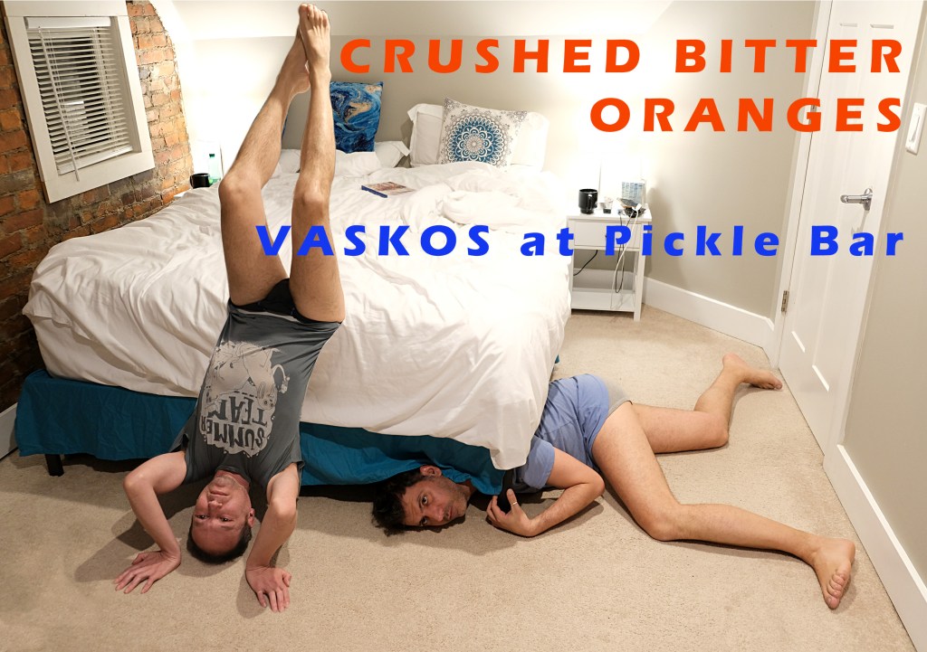 VASKOS (Vassilis Noulas & Kostas Tzimoulis)v participate with the performance Crushed Bitter Oranges co-curated by Dora Vasilakou at the Pickle Bar by Slavs and Tatars in the framework of the touring exhibition EVROVIZION.CROSSING STORIES AND SPACES organized by ifa (Institut für Auslandsbeziehungen) in cooperation with Goethe-Institut Athen, and EMST at Goethe Institut Athen, 29 April – 16 June, Athens, Greece.