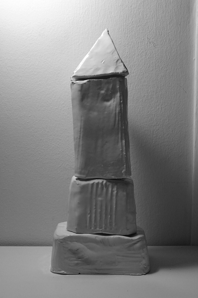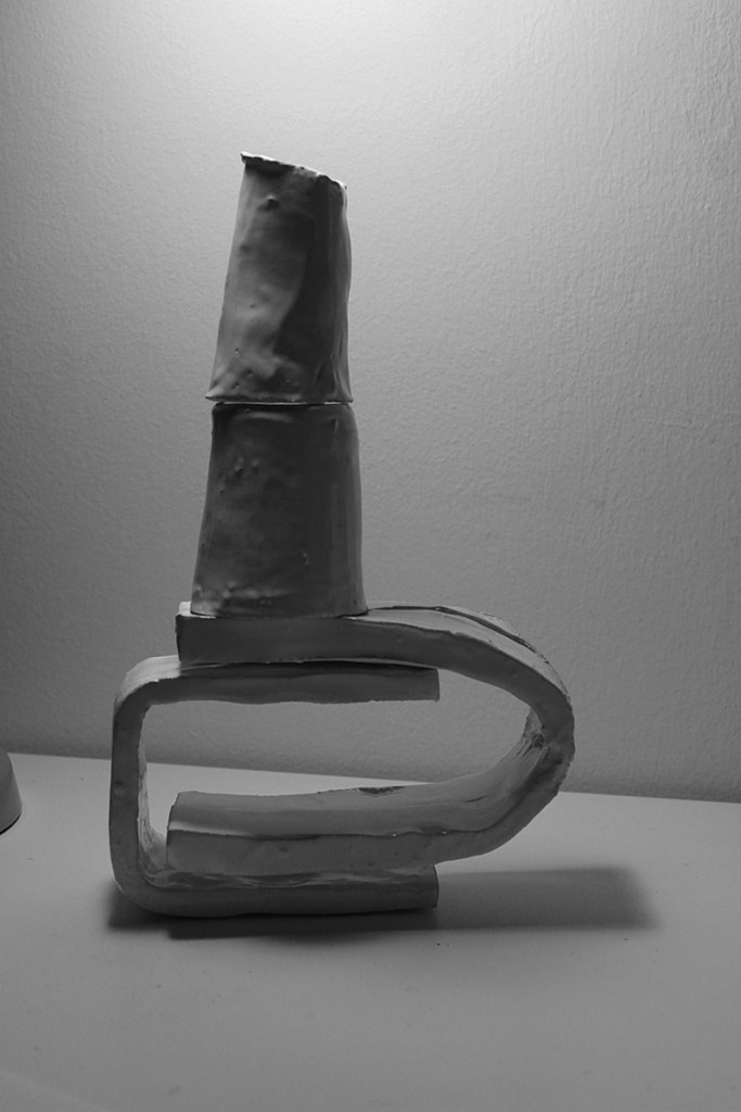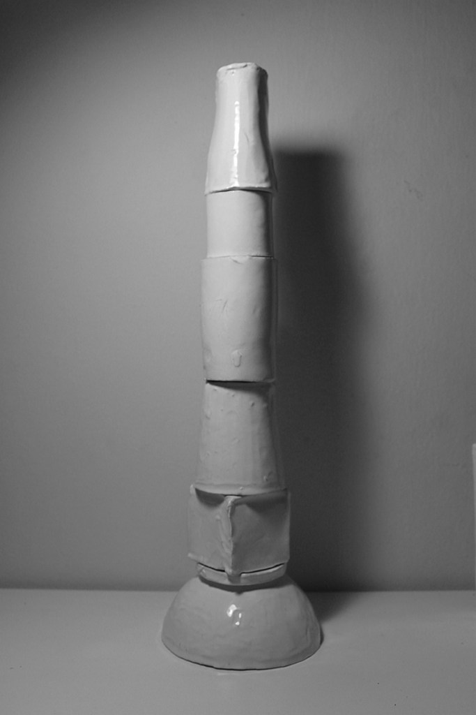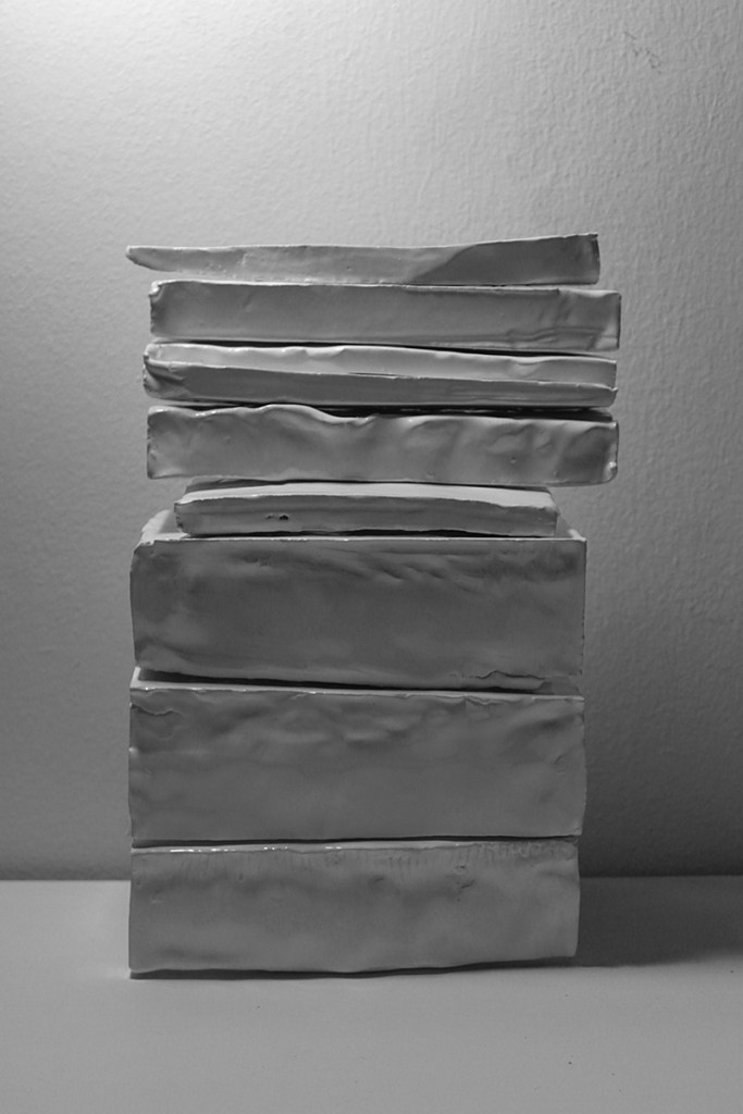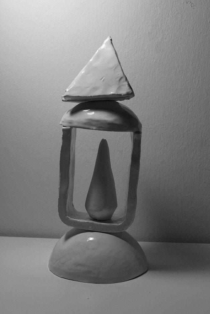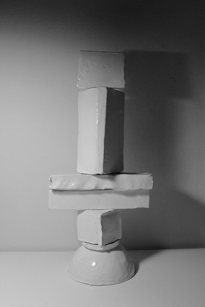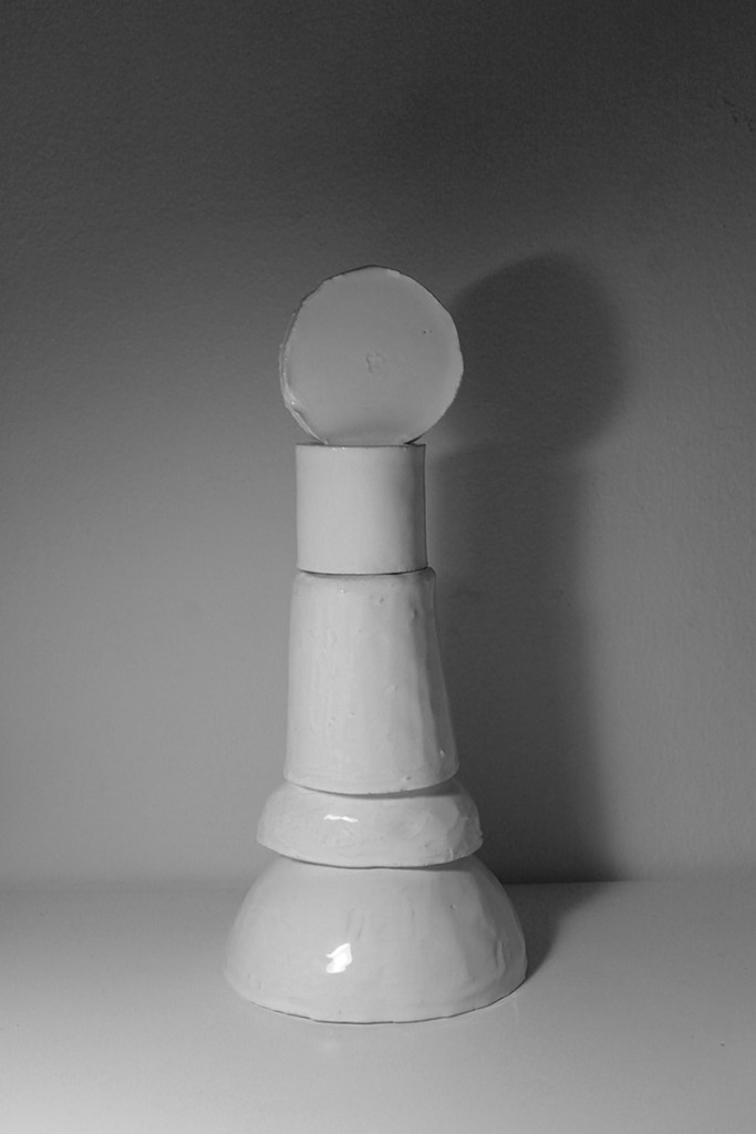 “Floating Castle” is a cluster of nine articulated sculptures. Every sculpture consists of a number of combined ceramic units. They are created in common by Vassilis and Kostas. In the exhibition Ivory Towers they are presented as one piece that creates a sculptural micro-utopia.