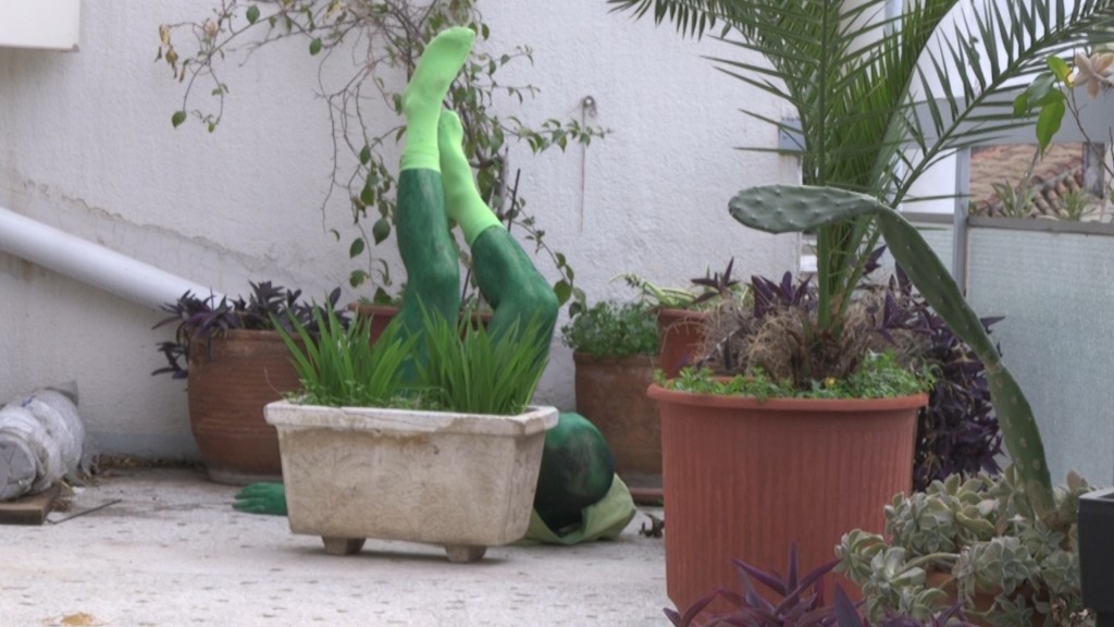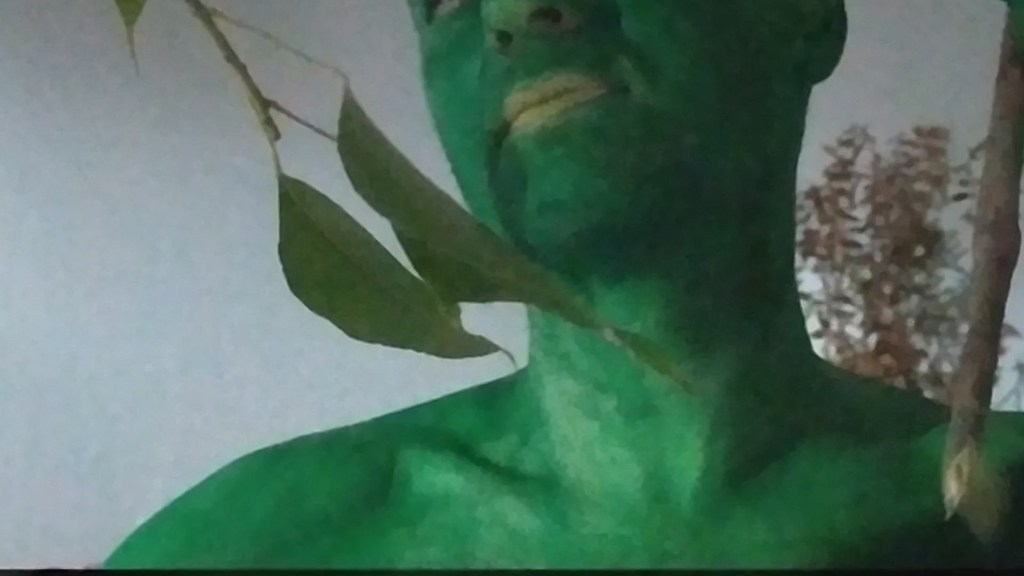 My Militant Dandies is a home-made short experimental video for two creatures: a green colored and a red-skinned. These creatures, like spirits, haunt all the rooms of the house, performing strange rituals. VASKOS create layers of cultural references, perform idiosyncratic dances, sing strange songs, use camp aesthetics and drag disguises, thus multiplying the self. The work is inspired by “The American Prayer” by Jim Morrison.