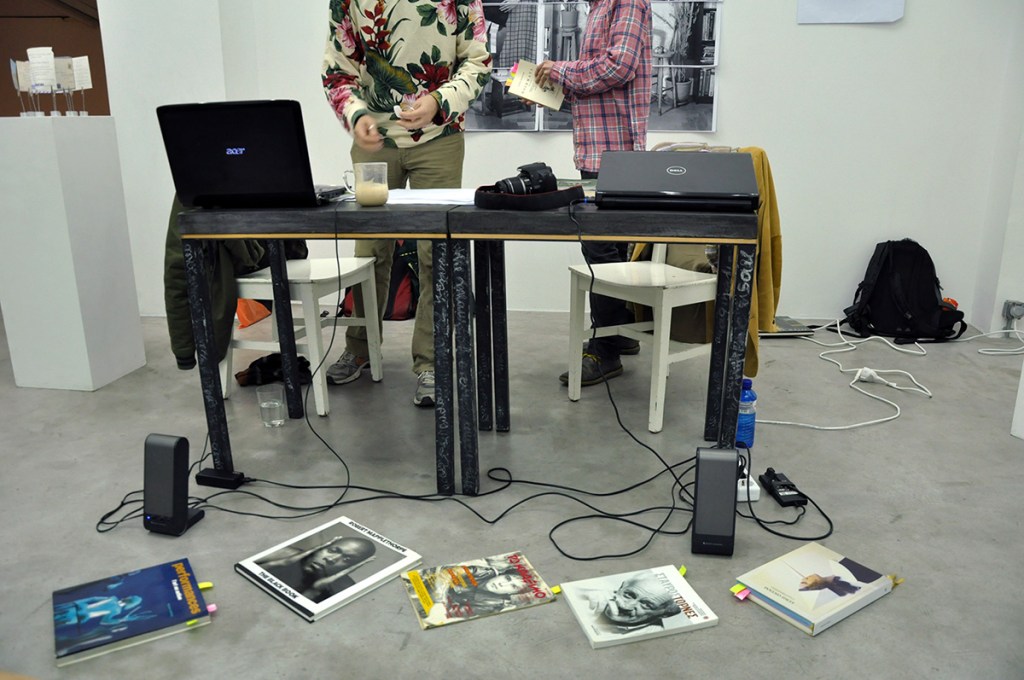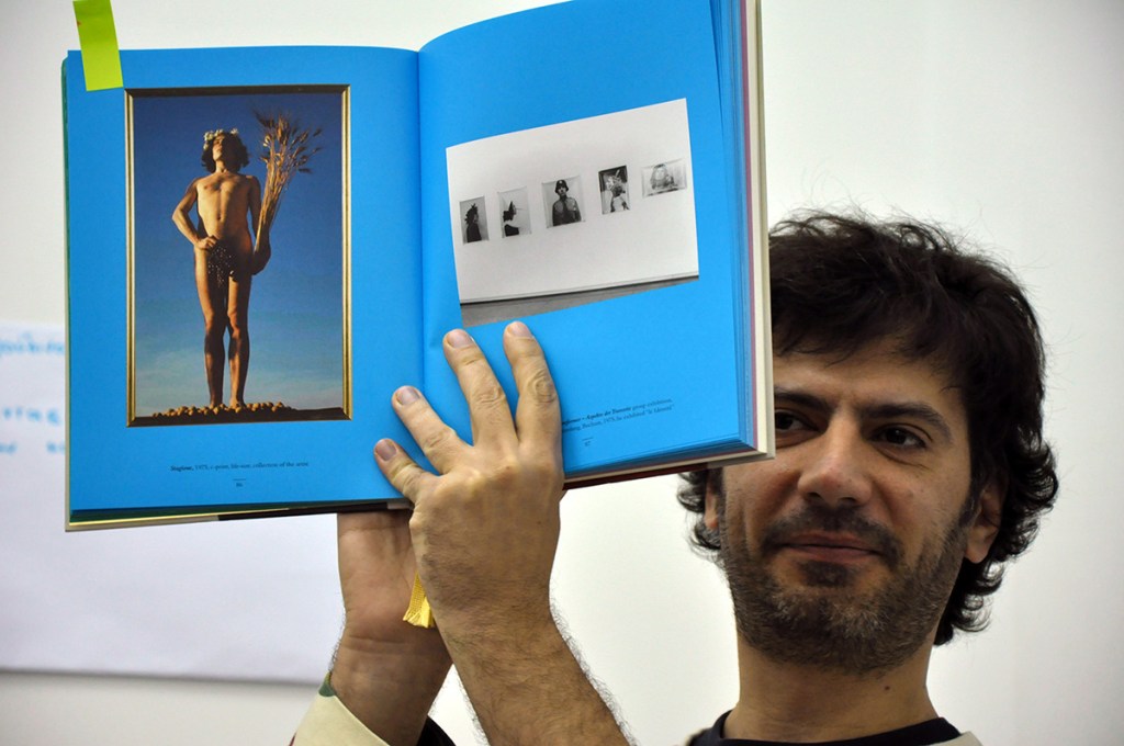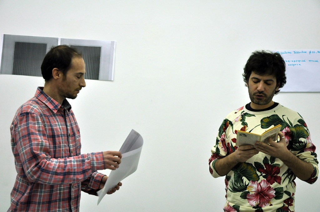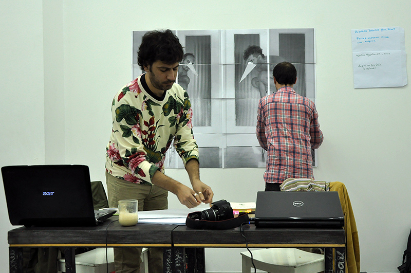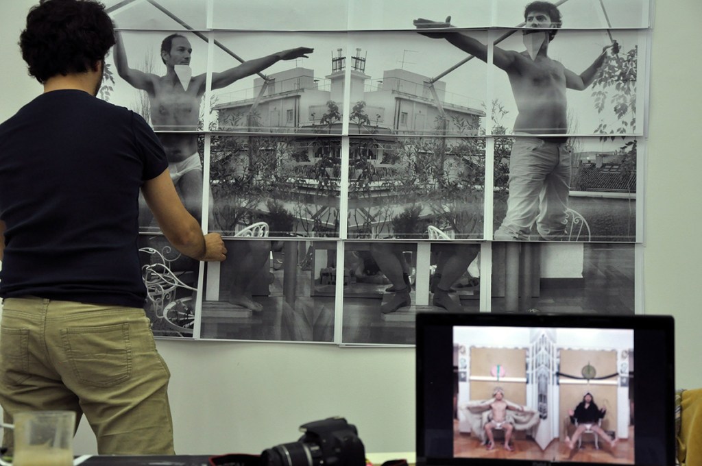 In Velutinous Veloudios VASKOS use a series of staged photographs which freely converse with the life and deeds of Thanos Murray-Veloudios, a controversial and versatile personality: first Greek aviator, enthusiast of Greek culture, dadaist, folklore expert, openly gay. During the lecture-performance, VASKOS pin their photos on the wall while at the same time they engage in a game of more or less coherent references: reading surrealist poems by Yannis Tsarouchis, Nicolas Calas, or Andreas Embirikos, demonstrating Cocteau’s homoerotic sketches, queer photos from Paola’s “Kraximo”, Luigi Ontani’s artworks, film stills from movies by Pasolini or Stavros Tornes, etc. Thus VASKOS create gradually a poetic constellation – a tribute to poetic, abberant lives.